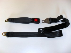 Lap Belt with stud fitting and buckle. Complete lap belt. Stud fitting for shoulder belt application. 60" total length, 12" buckle side, 48" tongue side